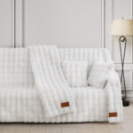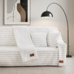 Beauty Home Γούνινο Σετ ριχτάρι 2τμχ Stripe Art 8728 (180×250+180×300) Λευκό