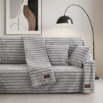 Beauty Home Γούνινο Σετ ριχτάρι 2τμχ Stripe Art 8727 (180×250+180×300) Γκρι