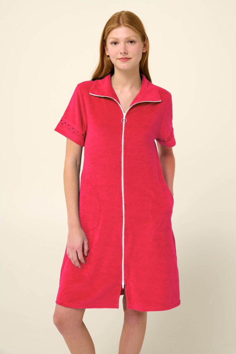 Vamp – Μονόχρωμο Frottee Φόρεμα Θαλάσσης με Φερμουάρ