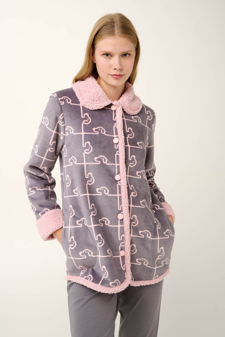 Γυναικεία Ρόμπα με Φερμουάρ σε Σκύλο-Παζλ Μοτίβο