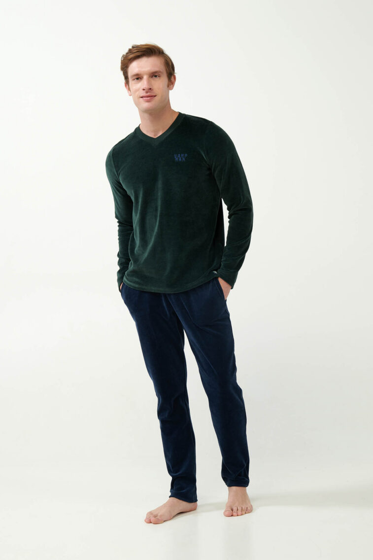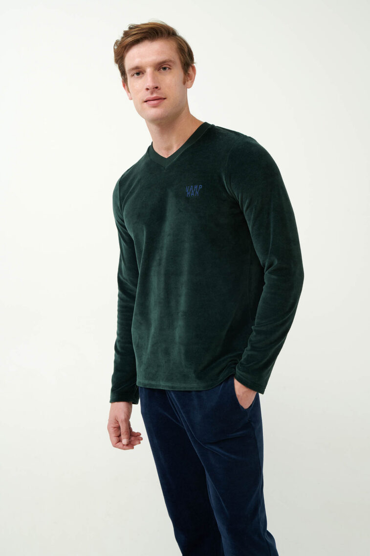 Κλασική Πυτζάμα Velvet με V Λαιμόκοψη
