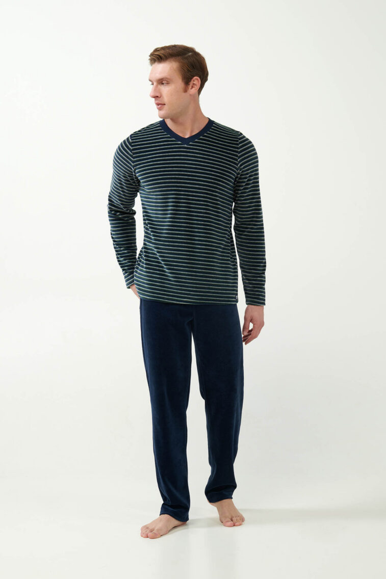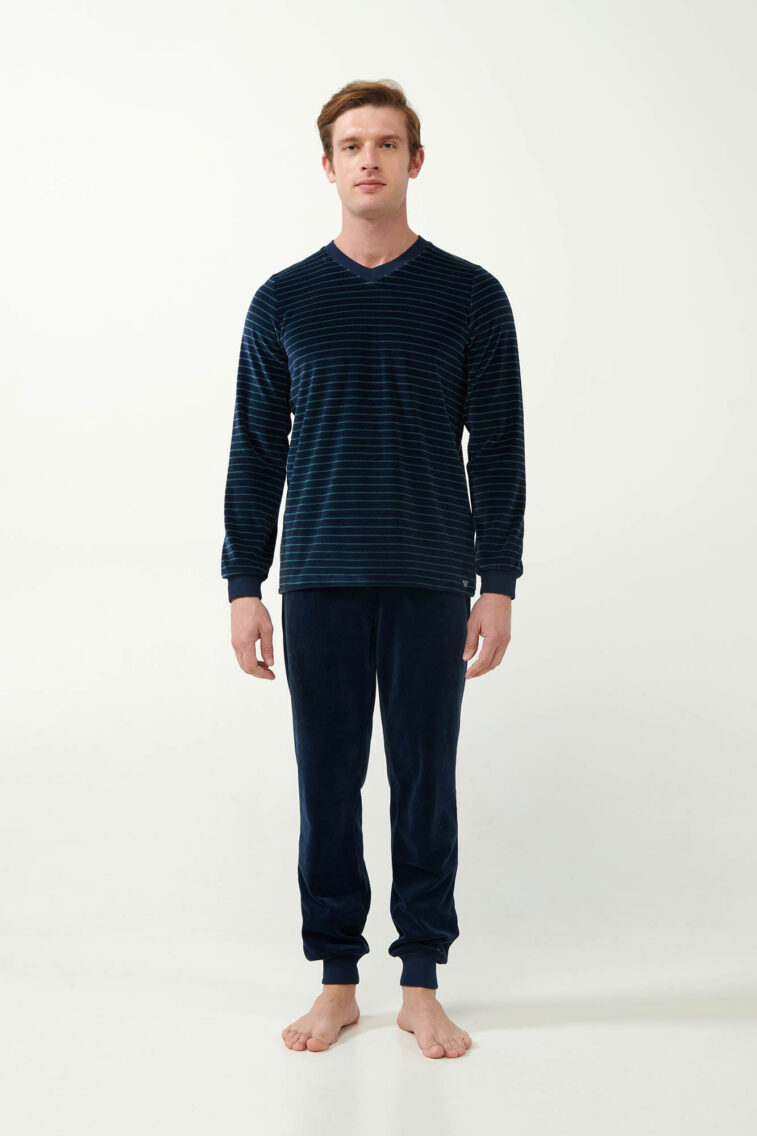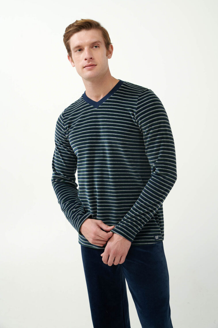 Ριγέ Πυτζάμα Velvet με V Λαιμόκοψη
