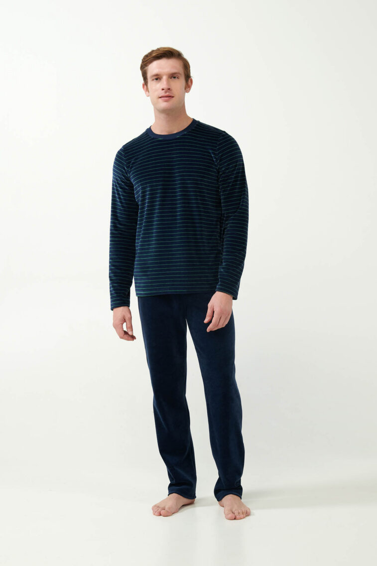 Ριγέ Πυτζάμα Velvet με Στρογγυλή Λαιμόκοψη