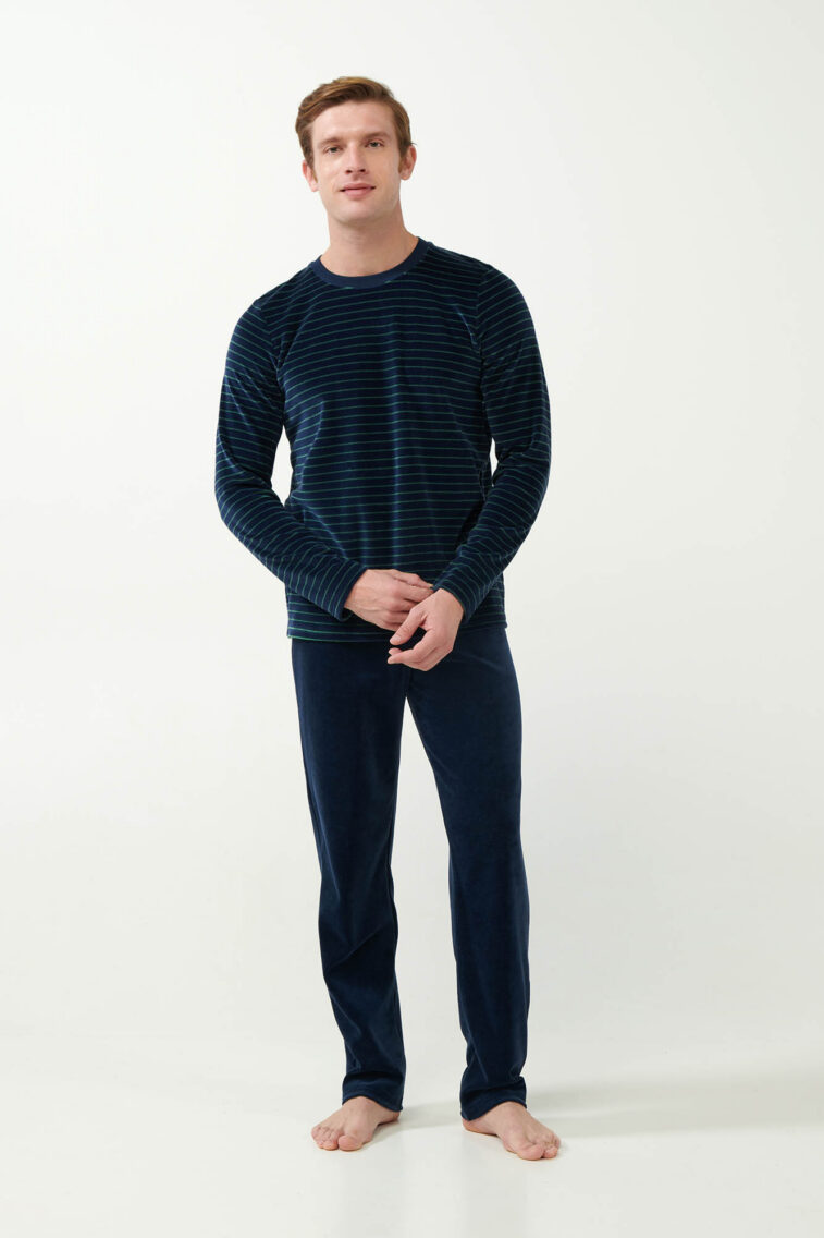 Ριγέ Πυτζάμα Velvet με Μανσέτες