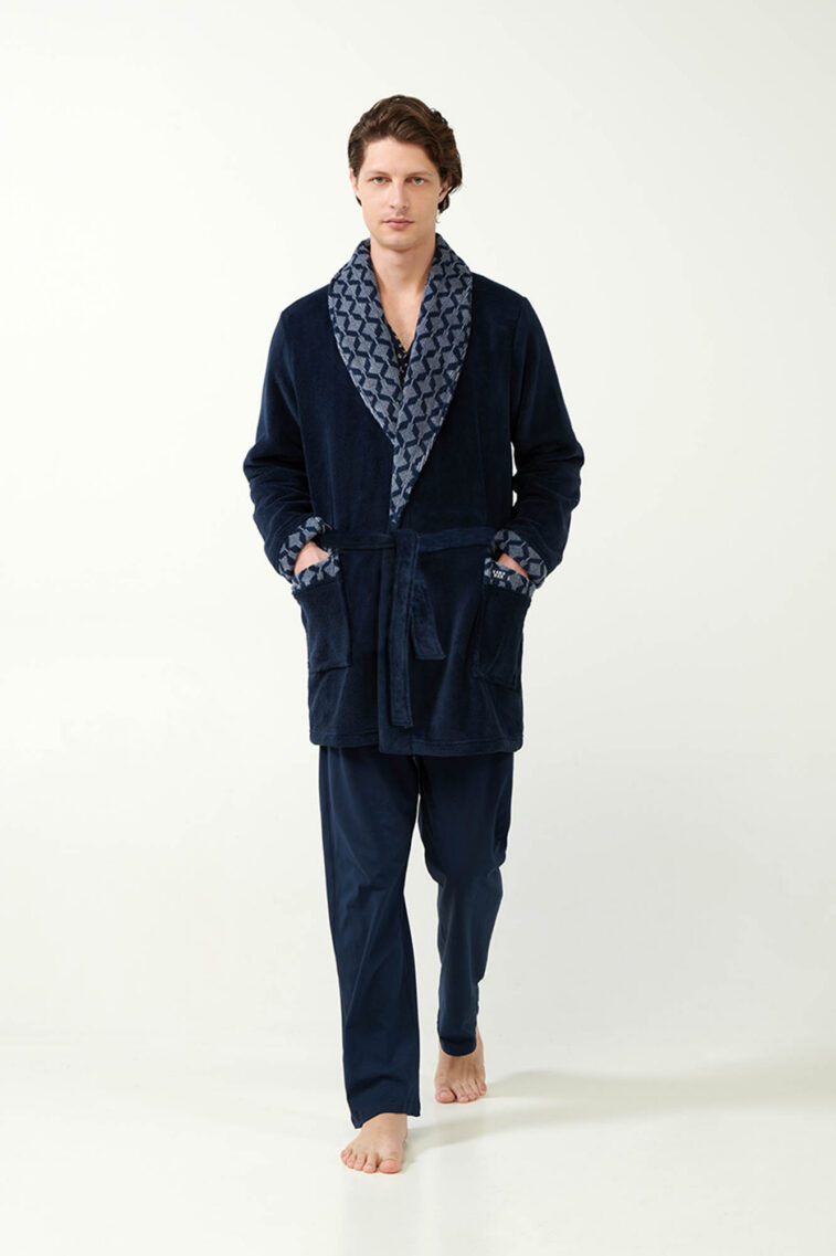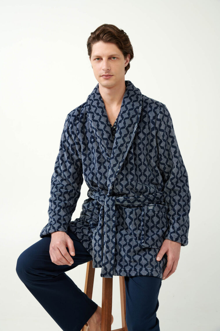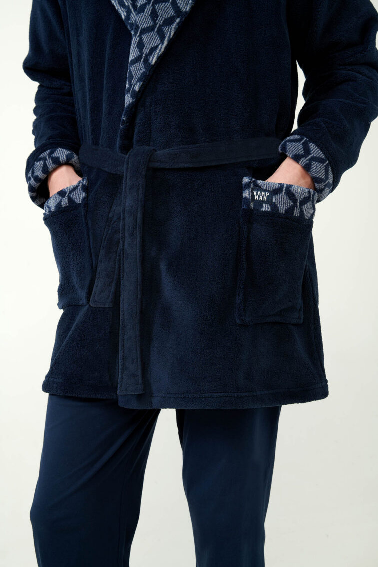 Σταυρωτή Fleece Ρόμπα με Γεωμετρικό Μοτίβο Ρόμβων