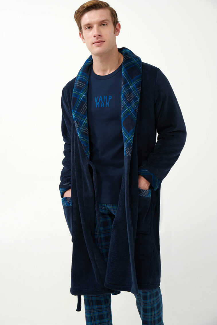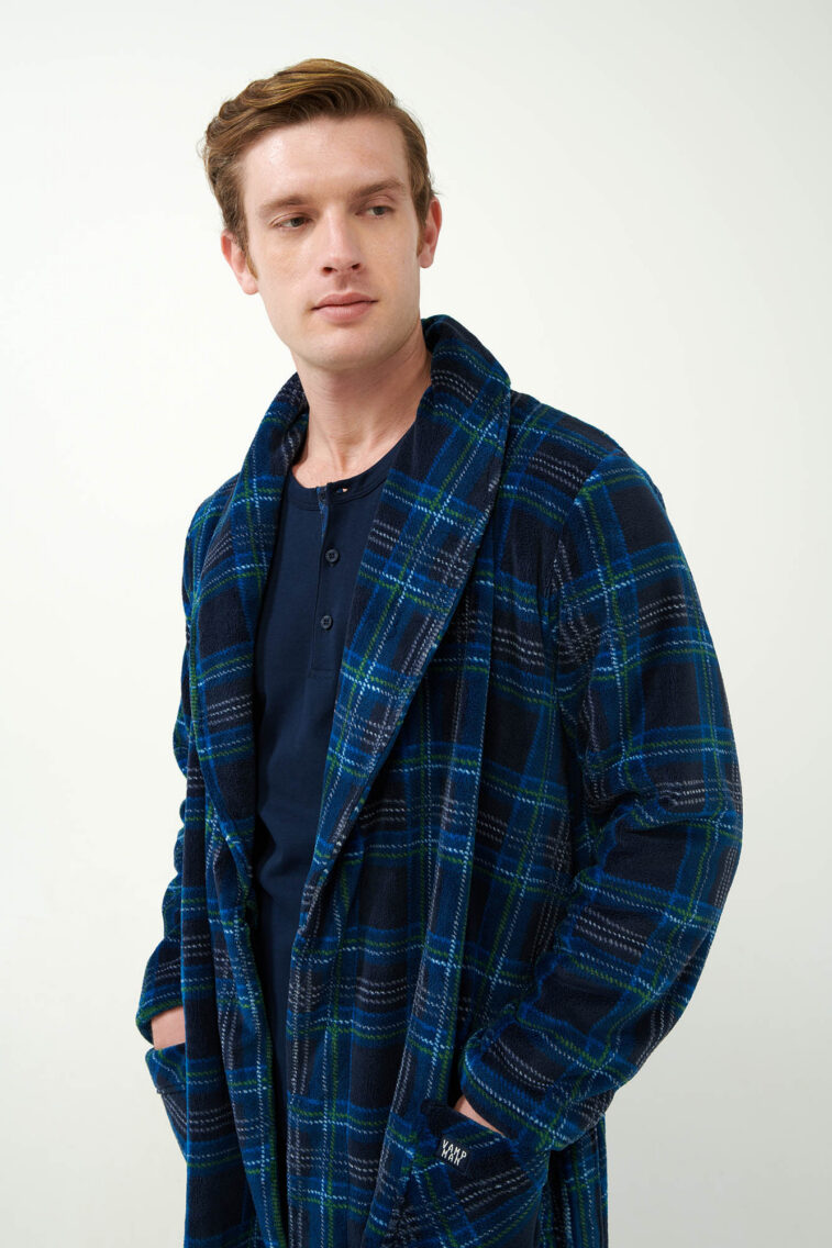 Μακριά Σταυρωτή Fleece Ρόμπα με Ταρτάν Μοτίβο