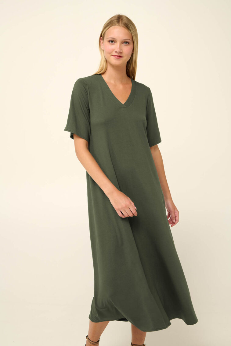 Vamp – Μονόχρωμο Καλοκαιρινό Φόρεμα με V Λαιμόκοψη