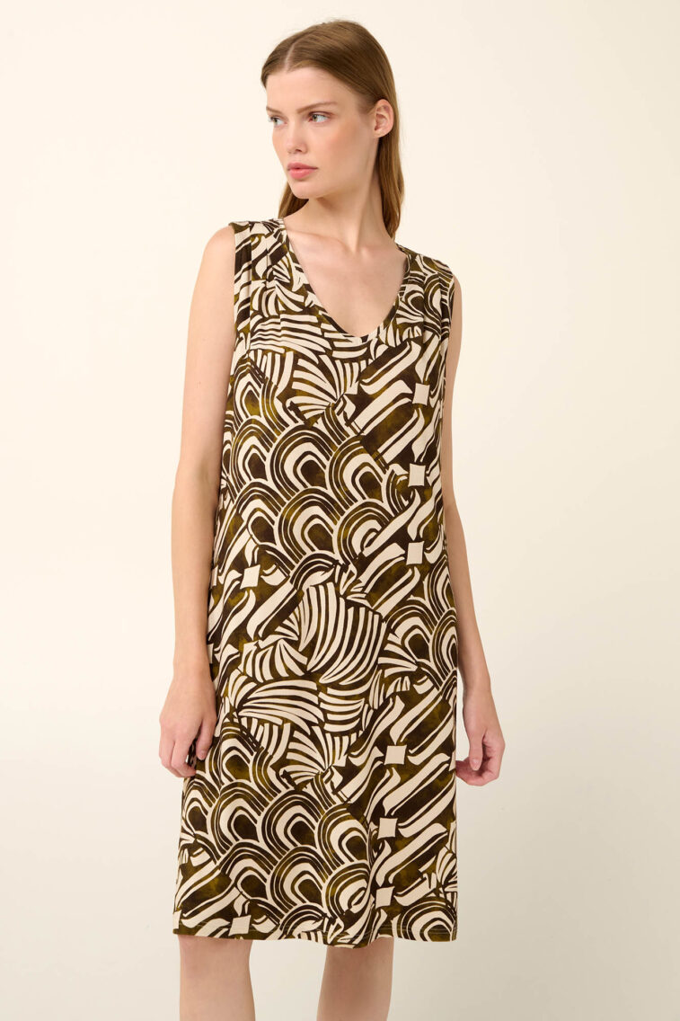 Vamp – Αμάνικο Καλοκαιρινό Φόρεμα Viscose σε Μαροκέν Patchwork Μοτίβο