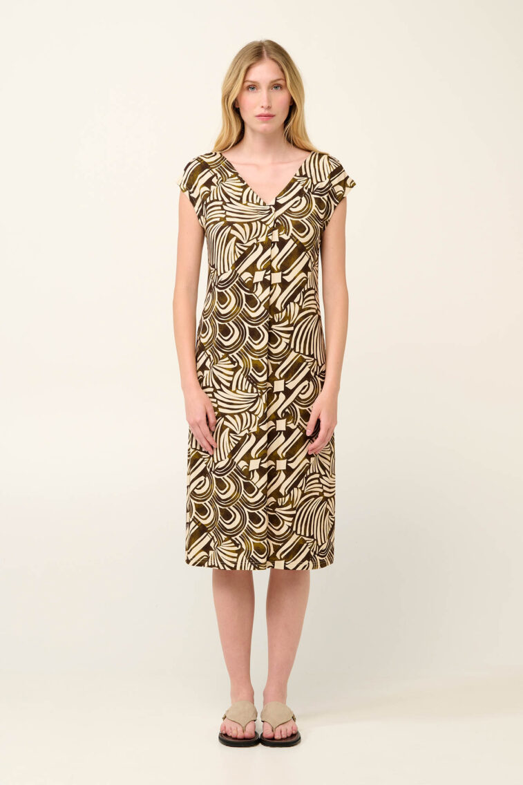 Vamp – Καλοκαιρινό Φόρεμα Viscose με Πιέτα σε Μαροκέν Patchwork Μοτίβο
