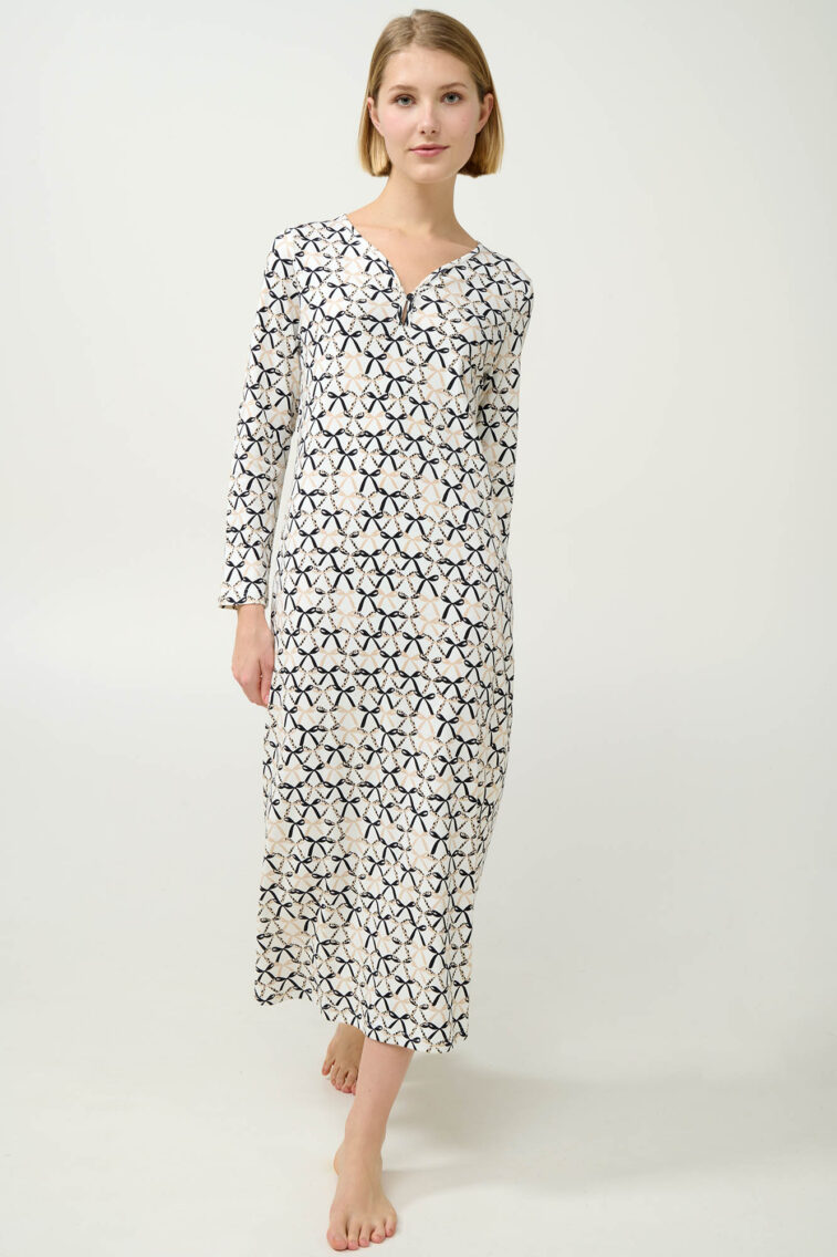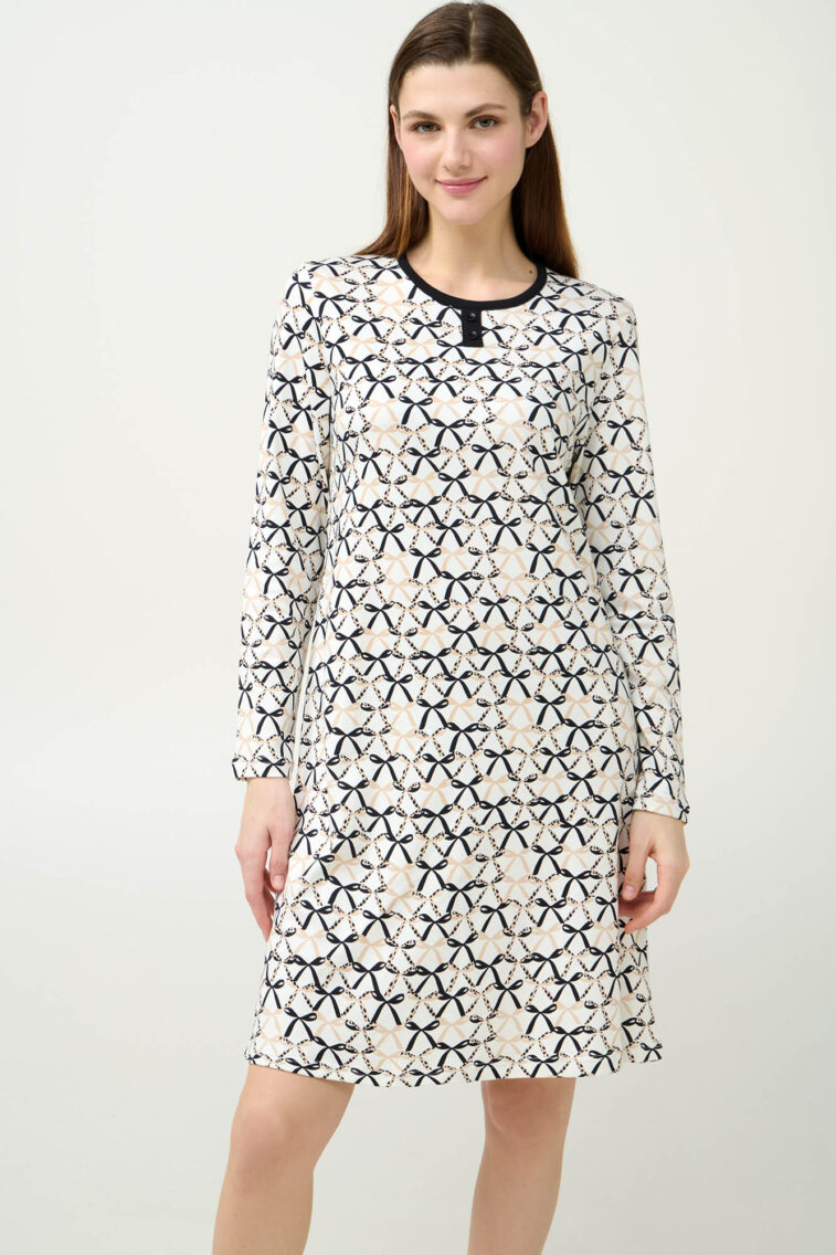 Μακρύ Βαμβακερό Νυχτικό με Φιόγκους