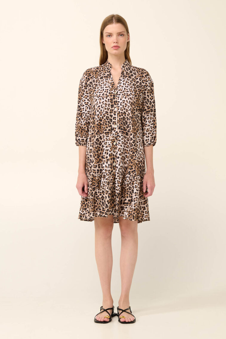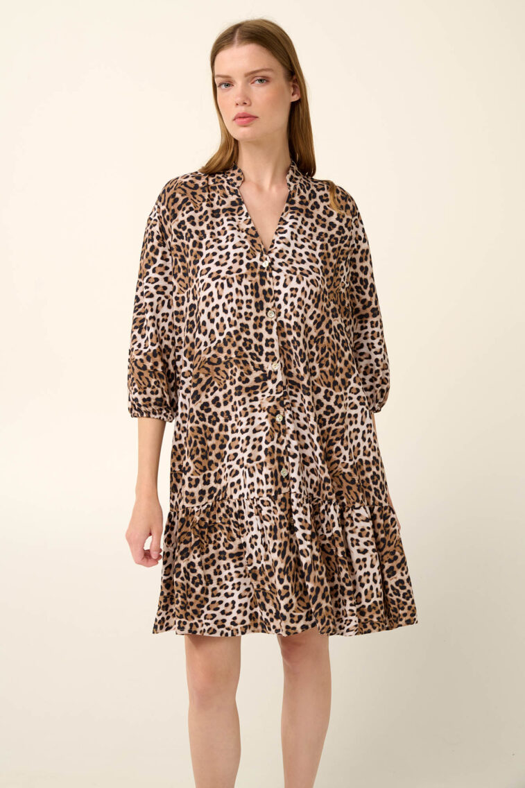 Vamp – Καλοκαιρινό Λεοπάρ Κουμπωτό Φόρεμα από Ποπλίνα