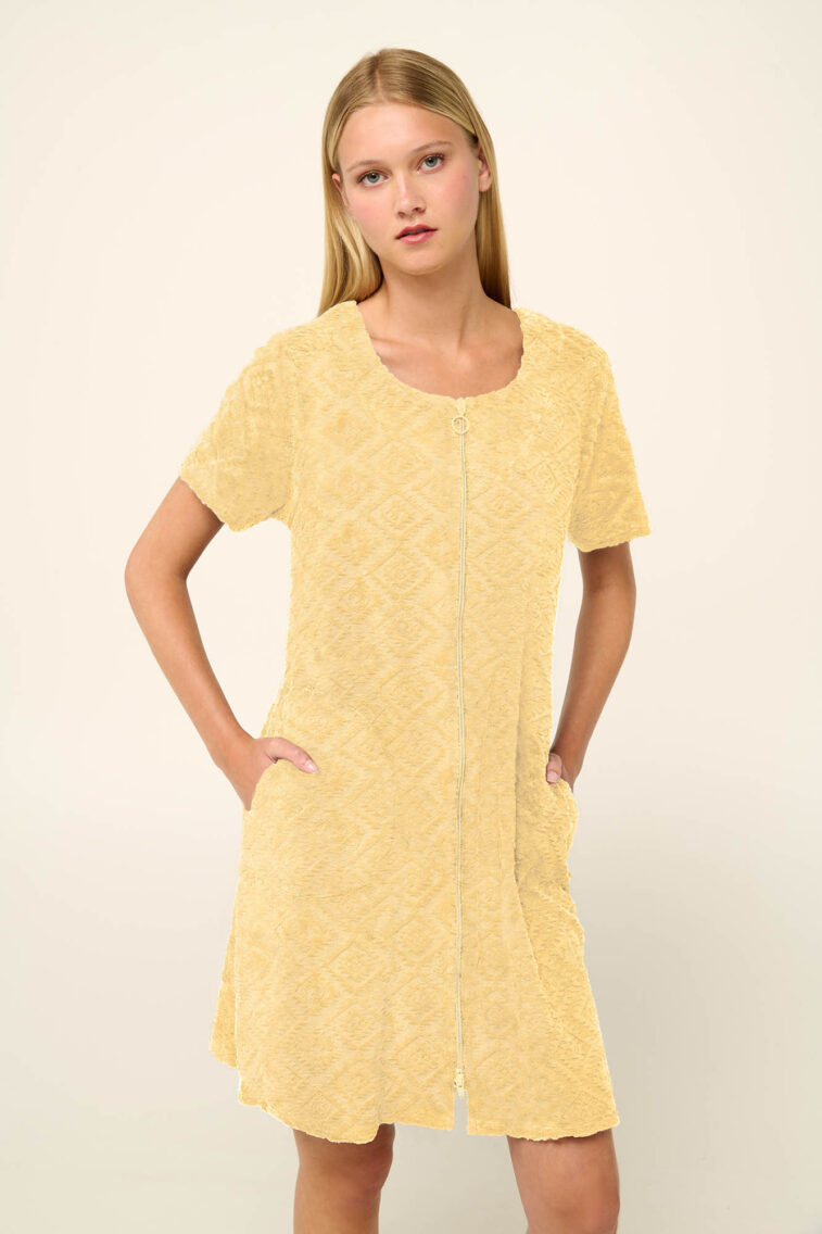Vamp – Μονόχρωμο Frottee Φόρεμα Θαλάσσης με Φερμουάρ
