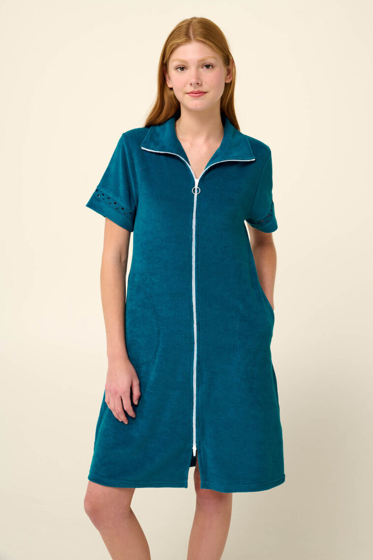 Vamp – Μονόχρωμο Frottee Φόρεμα Θαλάσσης με Φερμουάρ