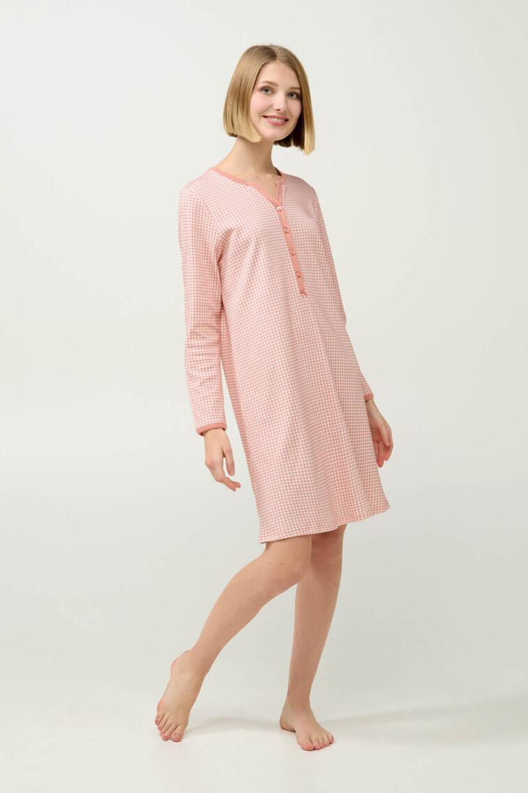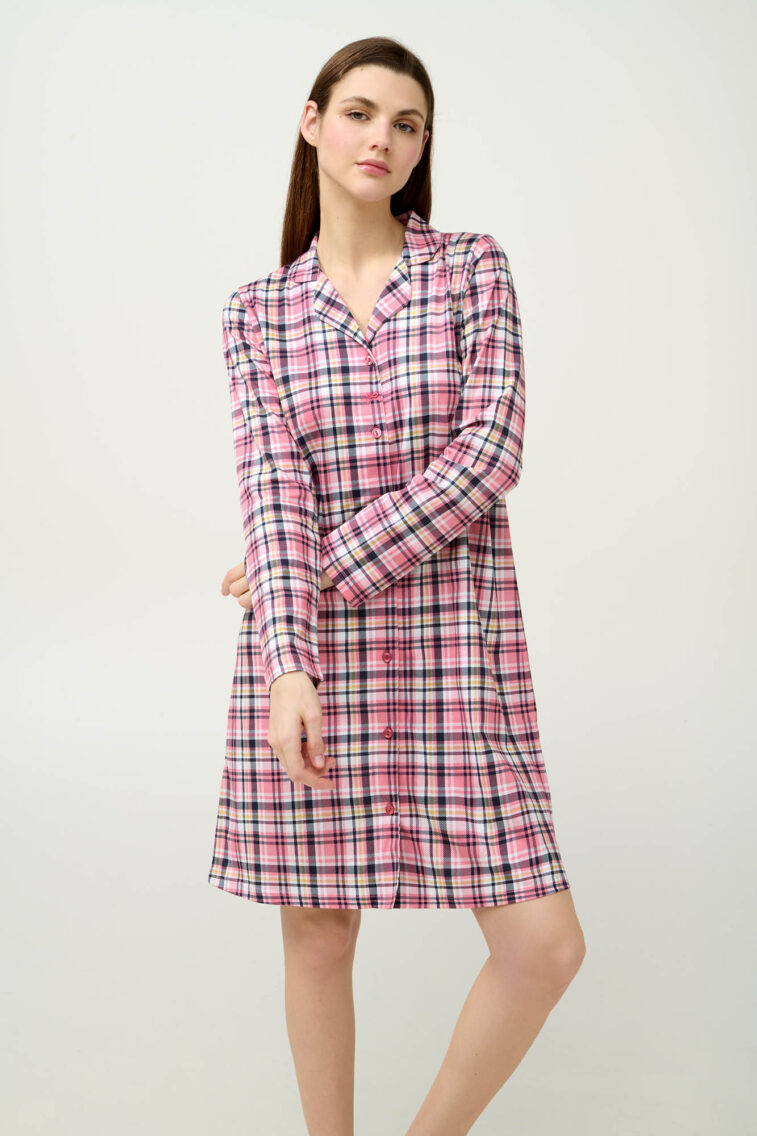 Βαμβακερό Κουμπωτό Καρό Νυχτικό