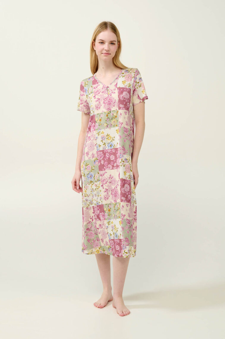Micromodal Φλοράλ Νυχτικό με Κοντό Μανίκι