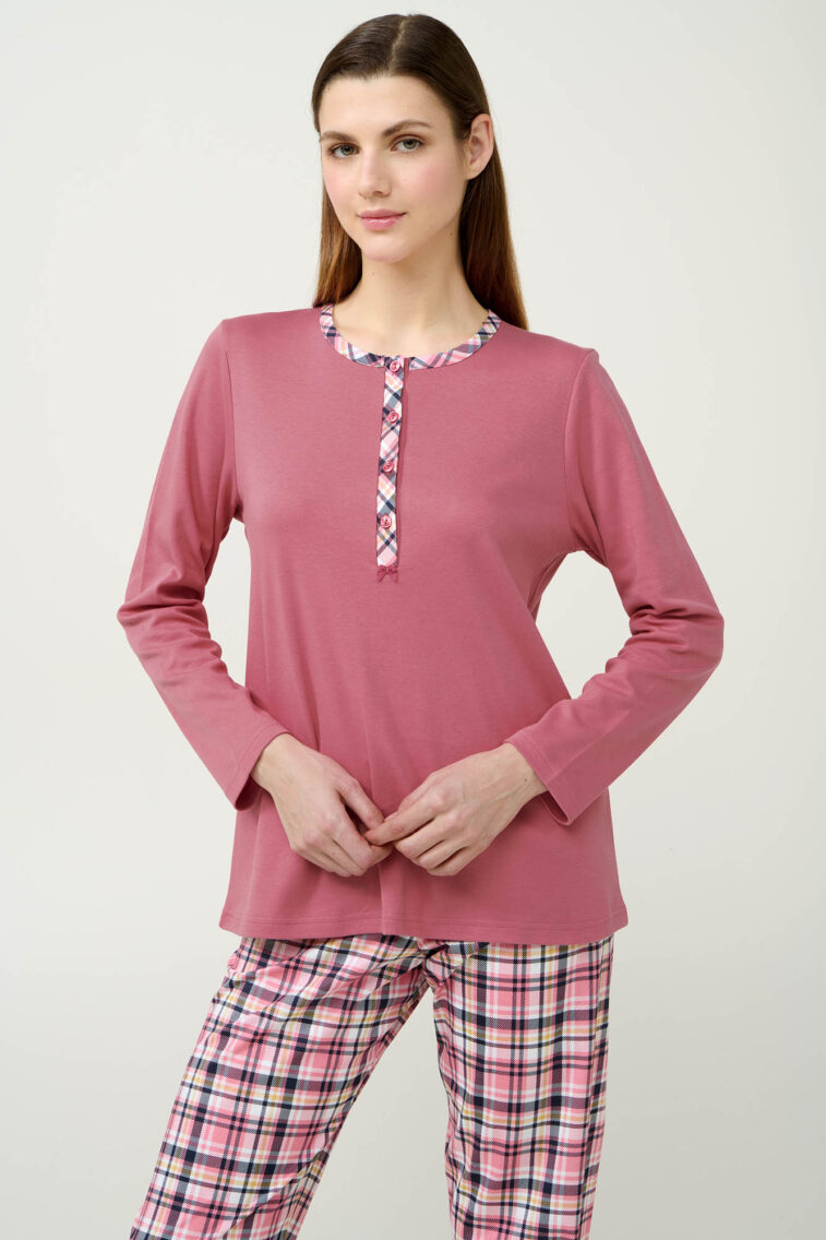 Κουμπωτή Καρό Γυναικεία Πυτζάμα