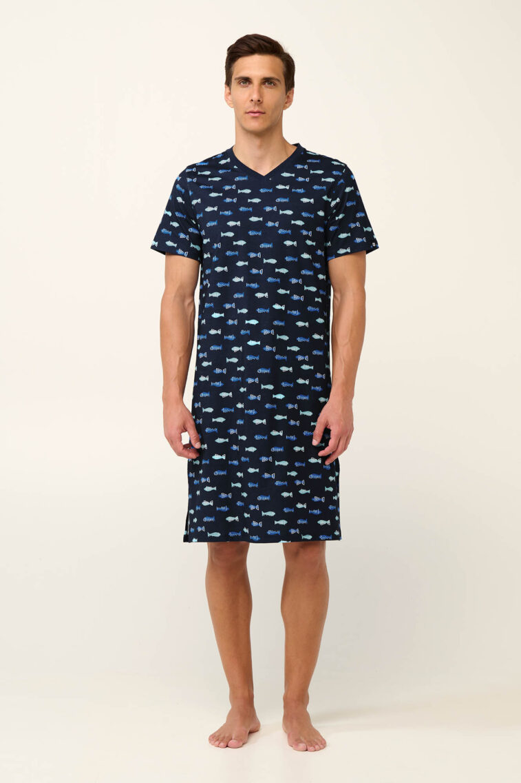 Vamp – Βαμβακερό Ανδρικό Νυχτικό με Ψαράκια