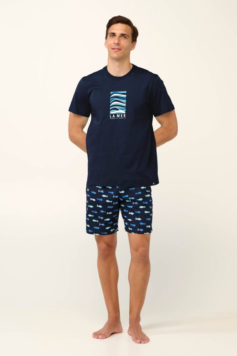 Vamp – Βαμβακερή Ανδρική Πυτζάμα με Ψαράκια