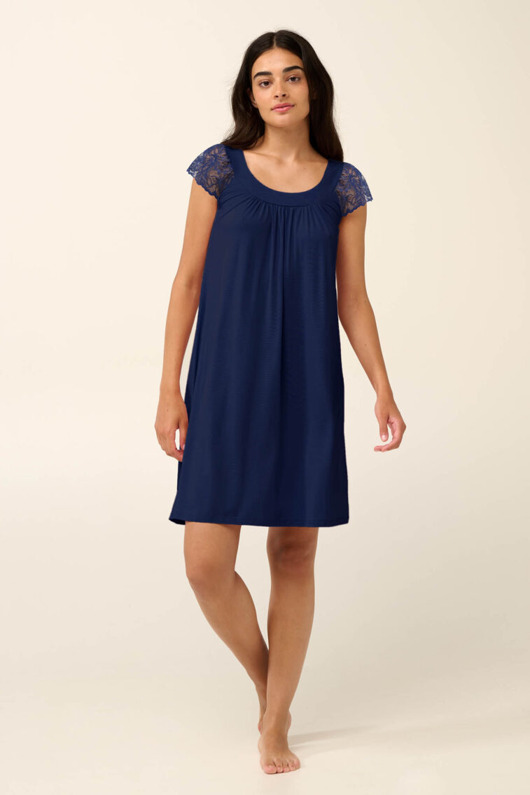 Vamp – Μονόχρωμο Καλοκαιρινό Νυχτικό με Μανίκι από Δαντέλα