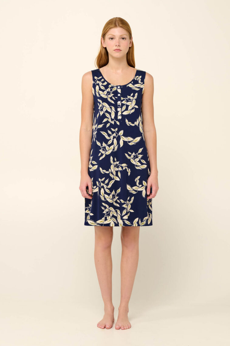 Αμάνικο Καλοκαιρινό Νυχτικό Micromodal με Μεσογειακό Φλοράλ Μοτίβο