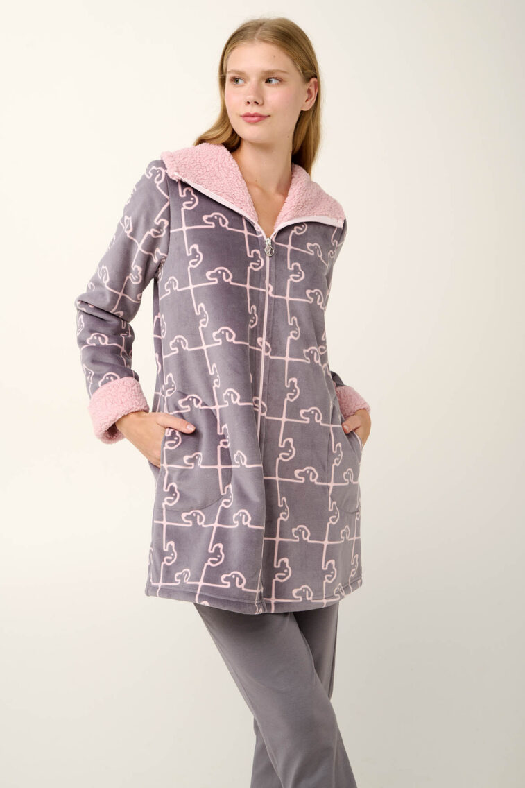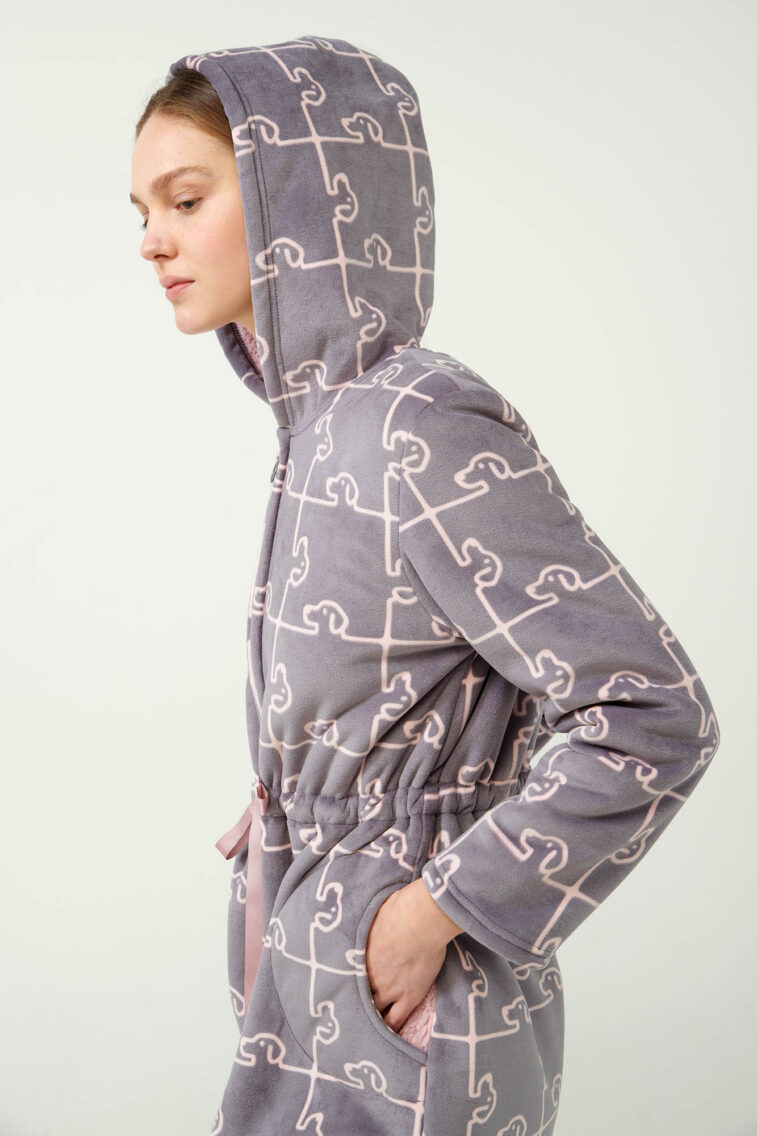 Γυναικεία Ρόμπα με Φερμουάρ σε Σκύλο-Παζλ Μοτίβο