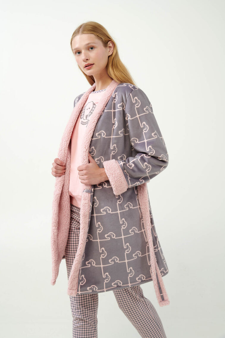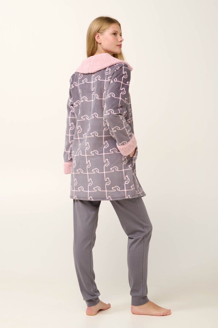 Fleece Ρόμπα με Σκύλο-Παζλ Μοτίβο