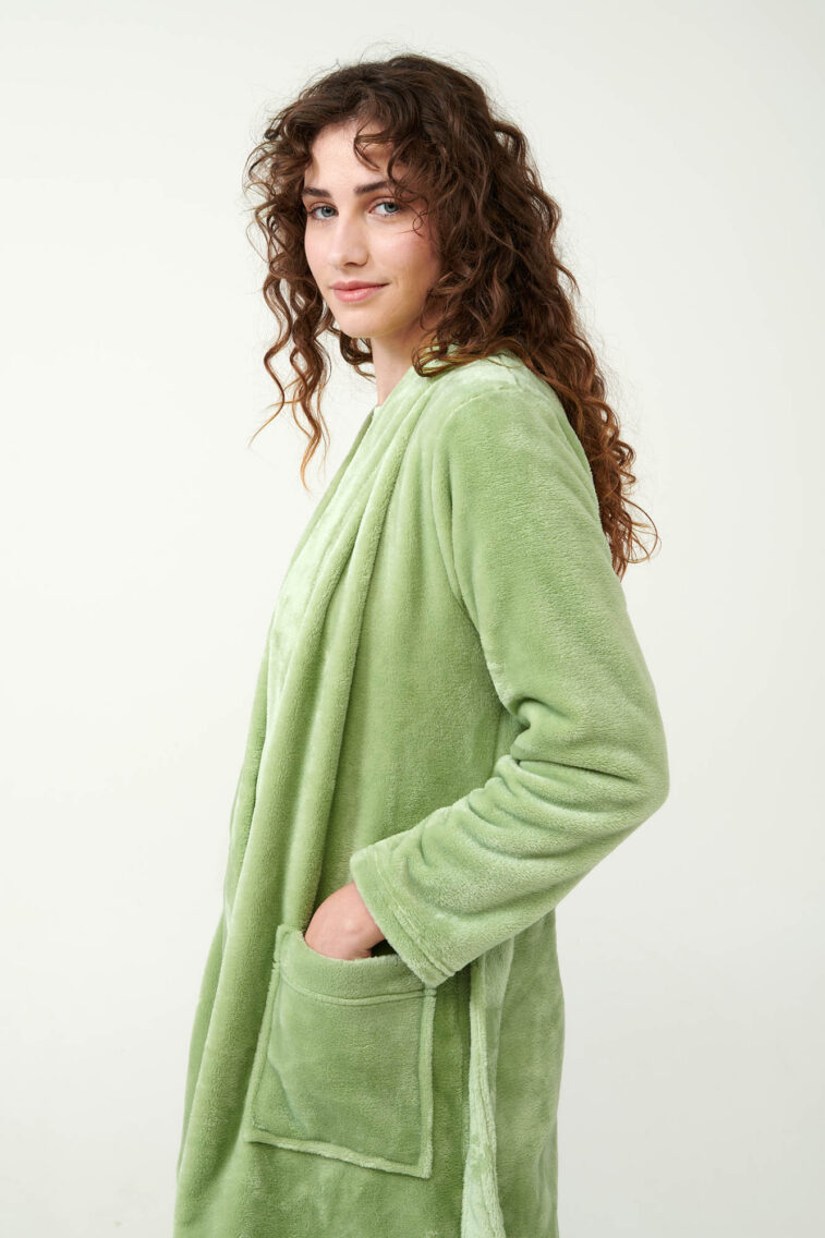 Μακριά Γυναικεία Ρόμπα Fleece με Κουμπιά