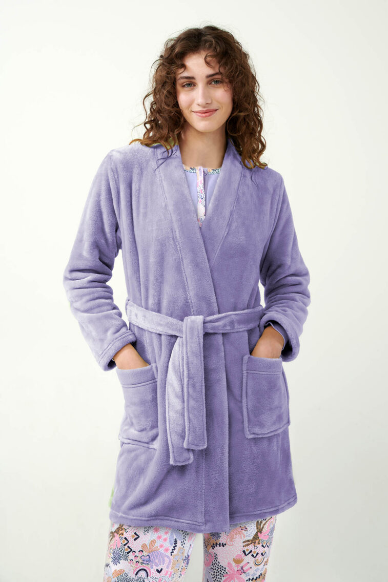 Κοντή Fleece Ρόμπα με Κουμπιά