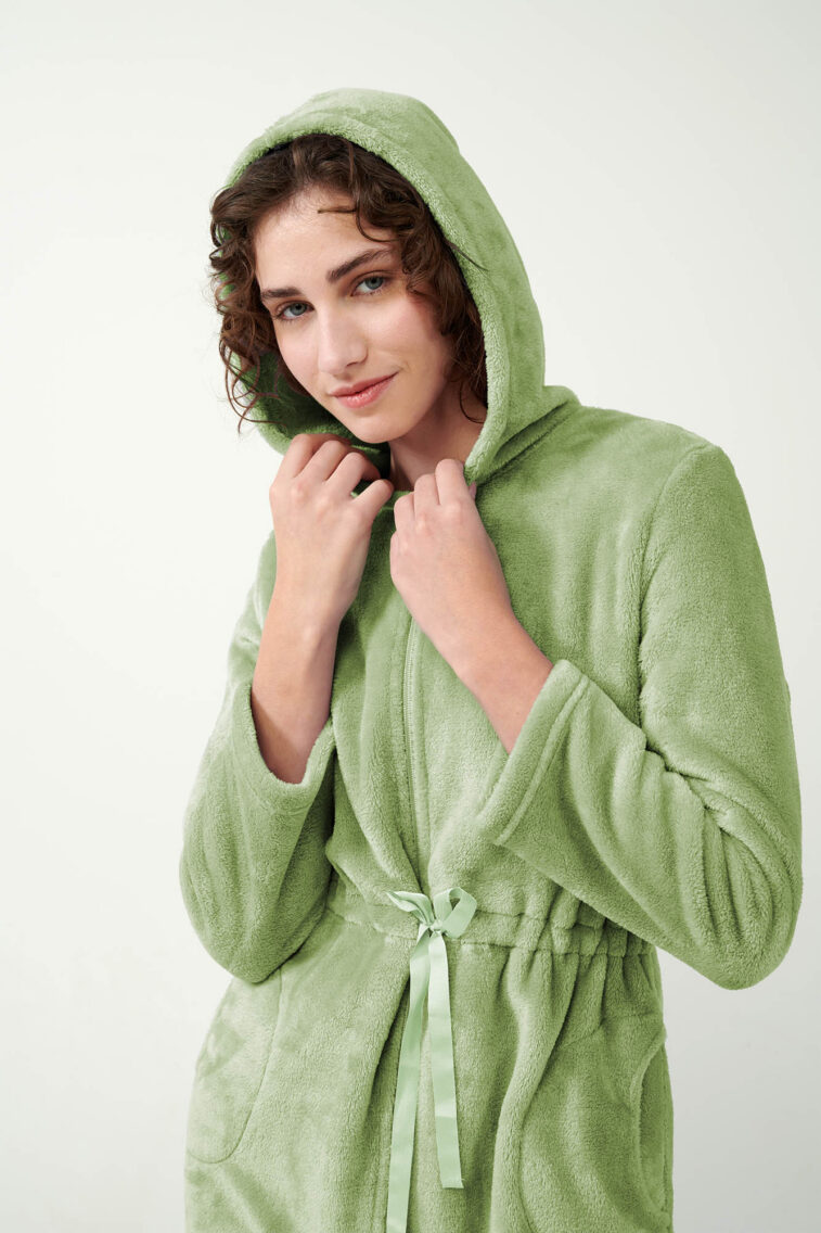 Γυναικεία Fleece Ρόμπα με Κουκούλα