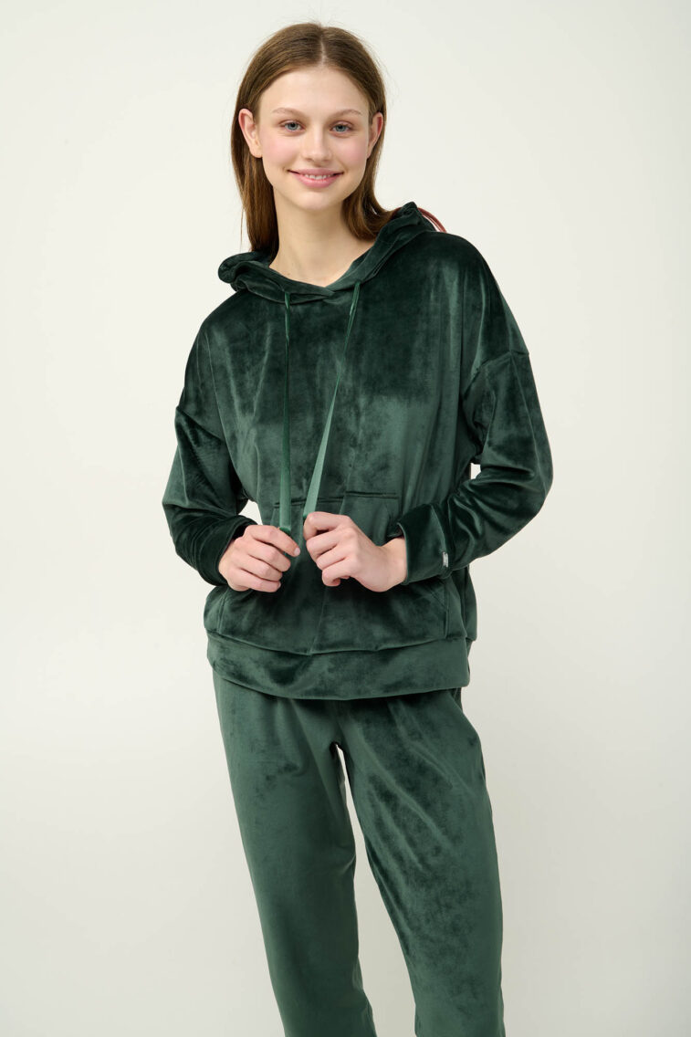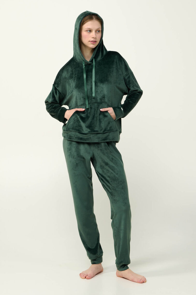 Γυναικείο Velvet Lounge Set με Κουκούλα