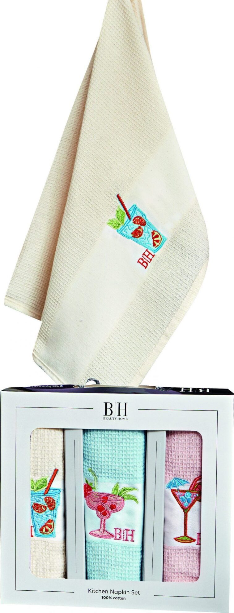 Beauty Home Ποτηρόπανα σετ 3τμχ Cocktail Art 8286 40×60 Εκρού,Σιέλ,Ροζ