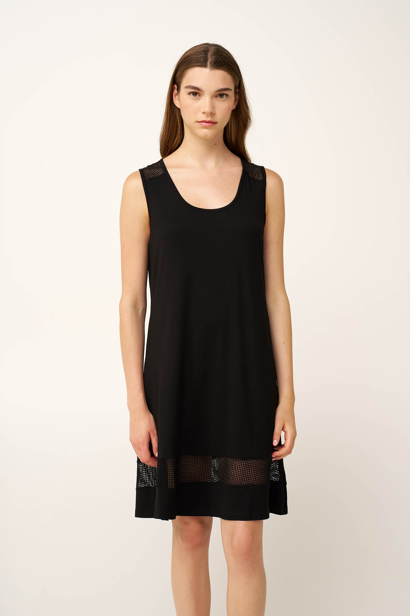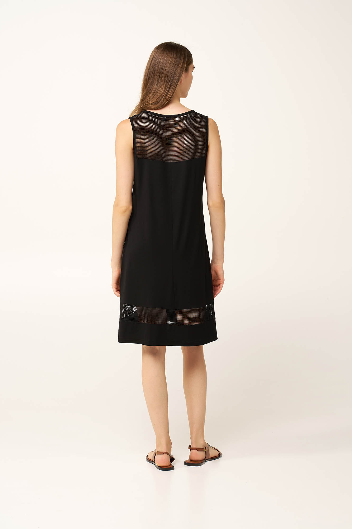 Ανανεώστε την συλλογή σας με αυτό το καλοκαιρινό φόρεμα από απαλό και δροσερό μείγμα viscose και elastane, που σας προσφέρει ελαφριά αίσθηση και διακριτική ελαστικότητα. Οι mesh λεπτομέρειες στο επάνω μέρος της πλάτης, στους ώμους και στο τελείωμα προσθέτουν υφή και μια εκλεπτυσμένη αντίθεση. Σχεδιασμένο με στρογγυλή λαιμόκοψη και χαλαρή γραμμή, ισορροπεί ανάμεσα στην απλότητα και το μοντέρνο του χαρακτήρα. Ένα φόρεμα που θα φορέσετε με ευκολία από το πρωί ως το βράδυ.
