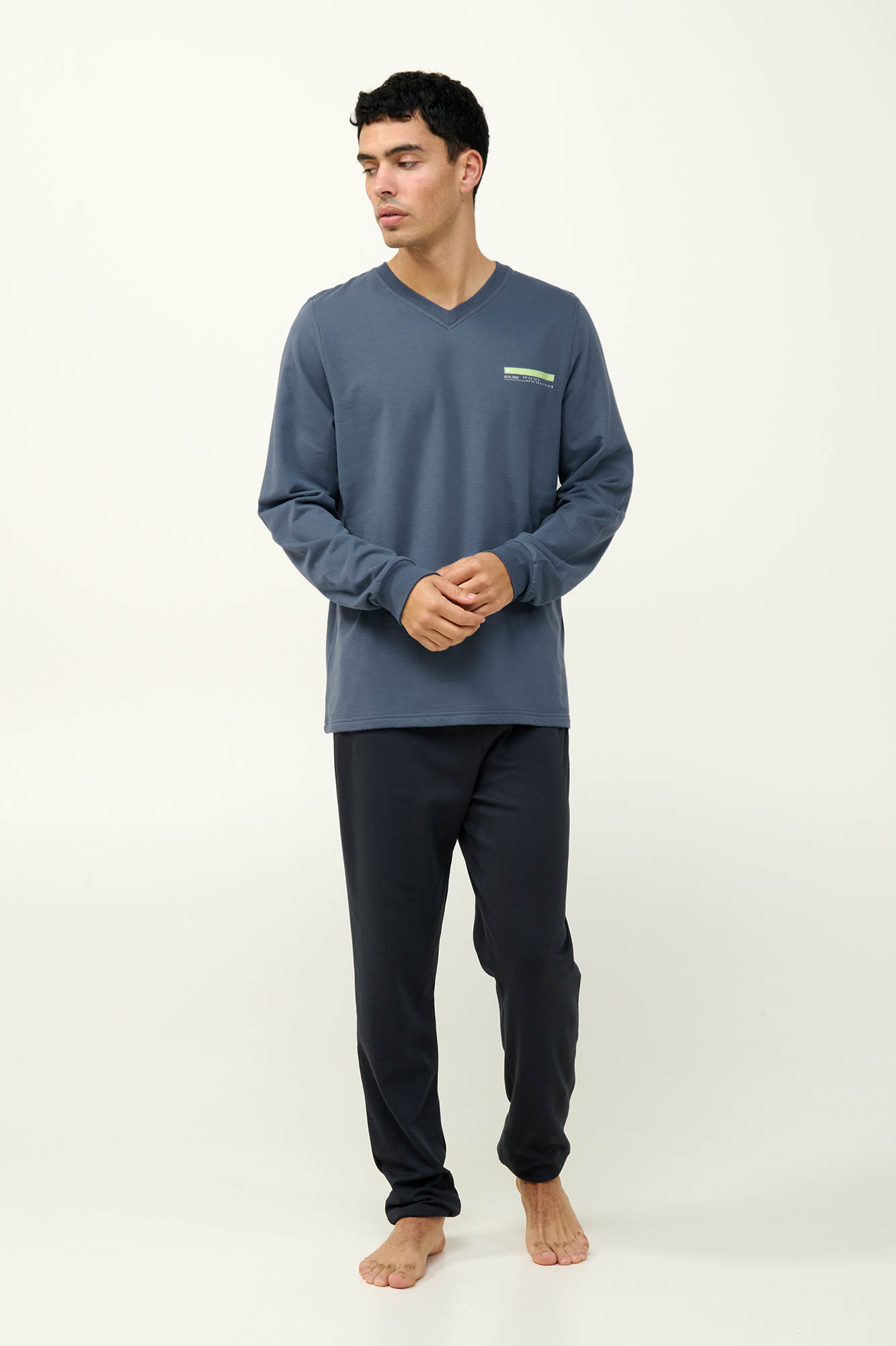 Ανανεώστε τη χειμερινή σας γκαρνταρόμπα με αυτό το ανδρικό σετ φόρμες, σχεδιασμένο για χαρίσει καθημερινή άνεση. Κατασκευασμένο από 100% φούτερ βαμβάκι, αποτελείται από μπλούζα με V λαιμόκοψη και μακριά μανίκια με μανσέτες για σταθερή και ζεστή εφαρμογή. Το σετ συμπληρώνει αρμονικά ένα μονόχρωμο παντελόνι. Ιδανική επιλογή για χαλαρές εμφανίσεις, ελαφριά άσκηση ή στιγμές ξεκούρασης.