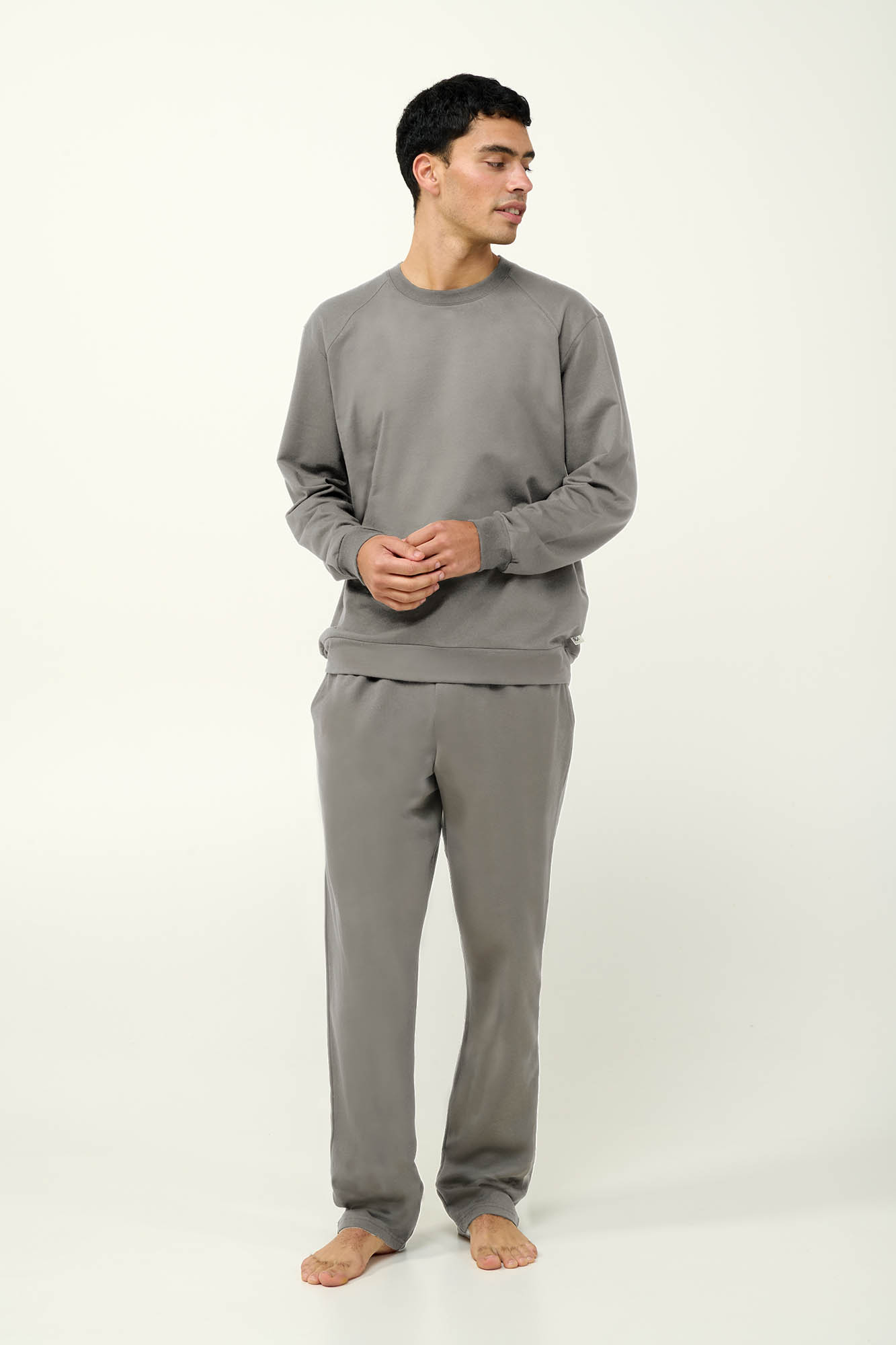 Προσθέστε στη συλλογή σας αυτή την  κομψή ανδρική φόρμα, σχεδιασμένη για χαρίσει καθημερινή άνεση. Σχεδιασμένη με στρογγυλή λαιμόκοψη και μακριά μανίκια με μανσέτες, είναι ιδανική τόσο για δραστηριότητες στο κρύο όσο και για χαλαρές στιγμές στο σπίτι. Κατασκευασμένη από απαλό φούτερ ύφασμα με υψηλή περιεκτικότητα σε βαμβάκι, προσφέρει ζεστή και ευχάριστη αίσθηση, ενώ η ελαστική μέση εξασφαλίζει άνετη και σταθερή εφαρμογή που θα απολαύσετε.