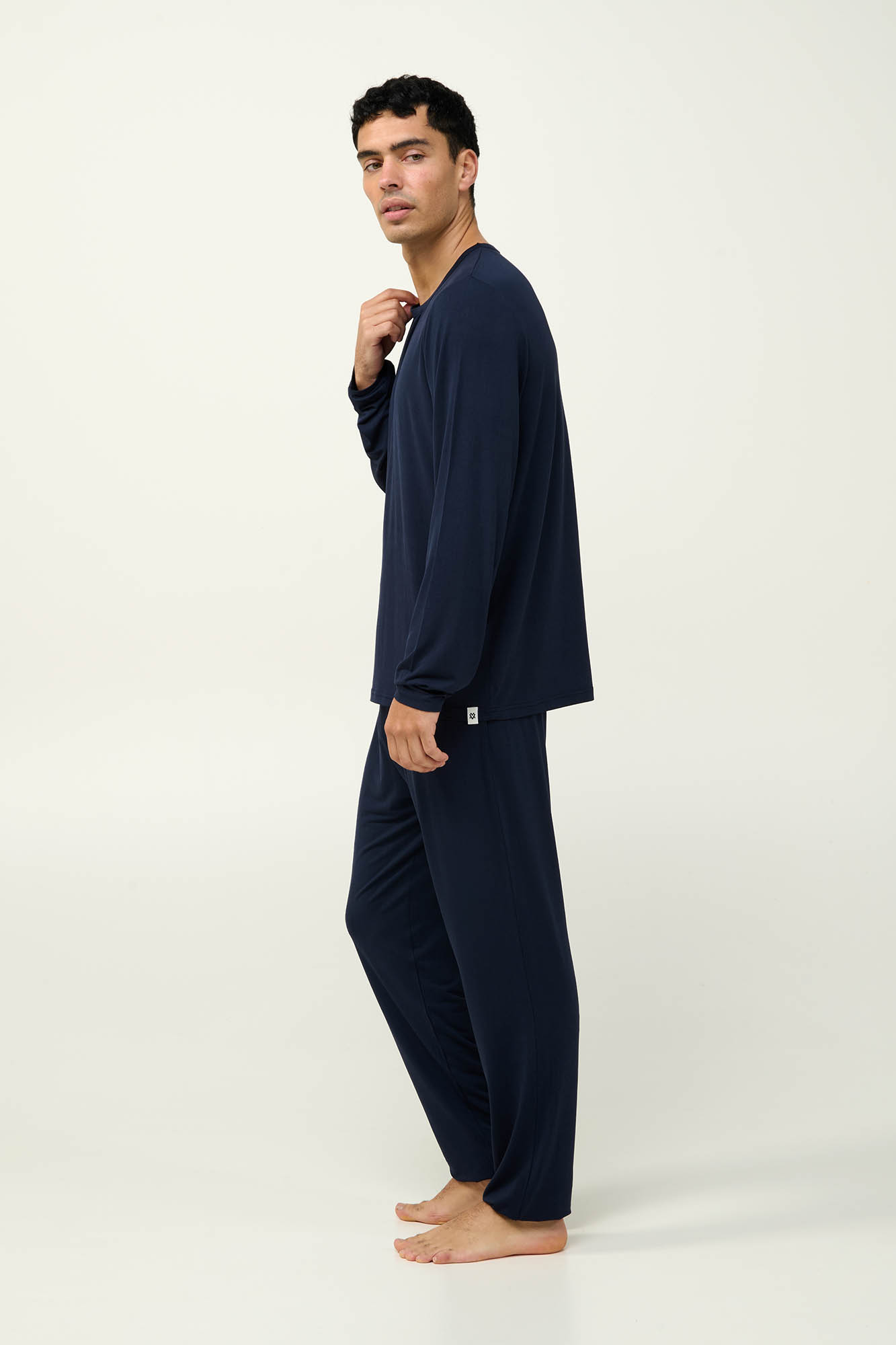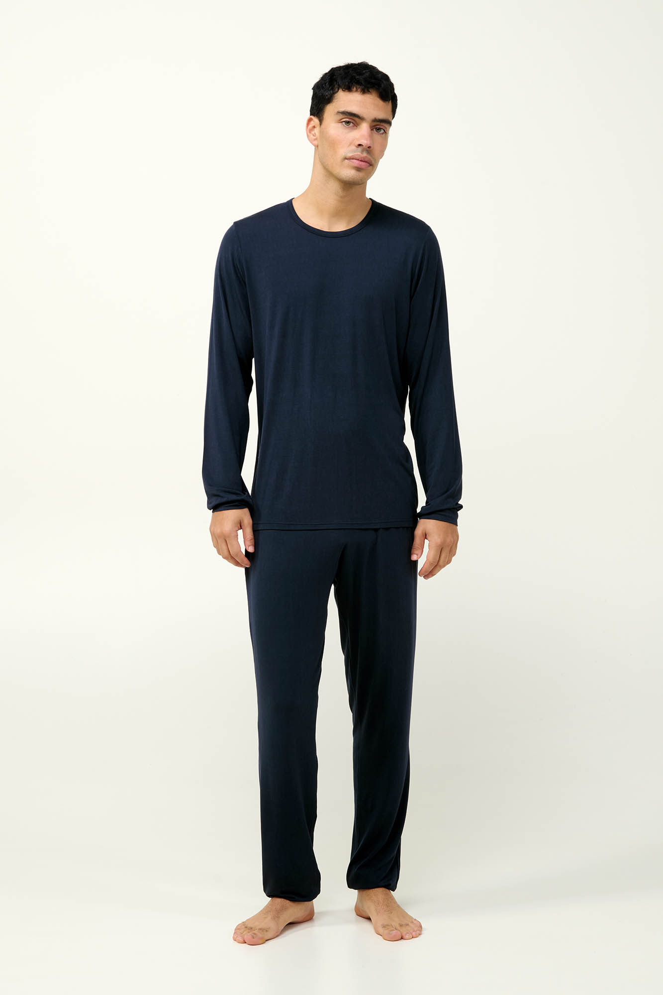Προσθέστε στη γκαρνταρόμπα σας αυτές τις ανδρικές χειμερινές πυτζάμες από LENZING Tencel Modal Micro, που προσφέρουν απαλή αίσθηση και διαρκή άνεση. Το σετ αποτελείται από μονόχρωμο τοπ με μανσέτες στα μανίκια και στρογγυλή λαιμόκοψη, που συνδυάζεται με ένα μονόχρωμο παντελόνι με μανσέτες για βέλτιστη εφαρμογή. Μια απλή αλλά διαχρονική πρόταση για να απολαύσετε κάθε στιγμή στο σπίτι.