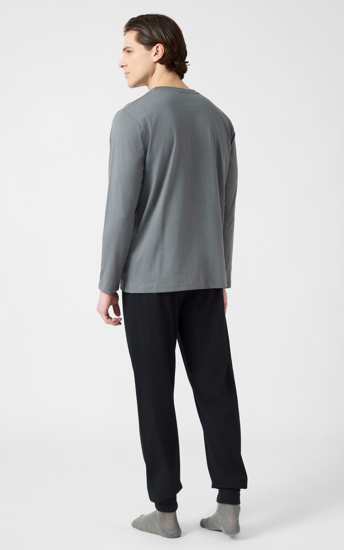 Χειμερινή πυζάμα από 100% βαμβακερό ύφασμα, υψηλής ποιότητος. Το σετ περιλαμβάνει μπλούζα με τύπωμα στο στήθος και παντελόνι με μπάσκες στα τελειώματα. (Γκρι σκ.)