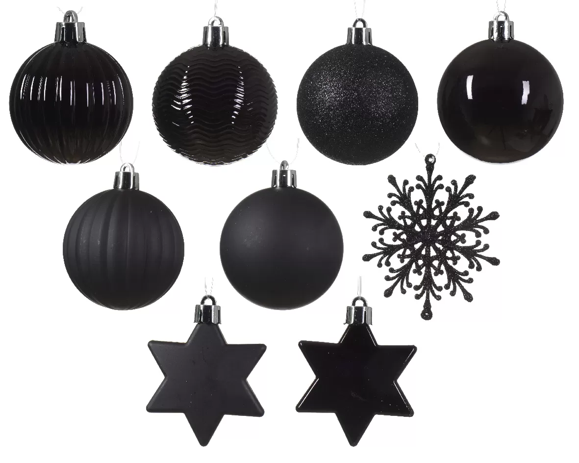 Δώστε λάμψη και πολυτέλεια στο χριστουγεννιάτικο δέντρο σας με τα χριστουγεννιάτικα στολίδια σε μαύρη απόχρωση.