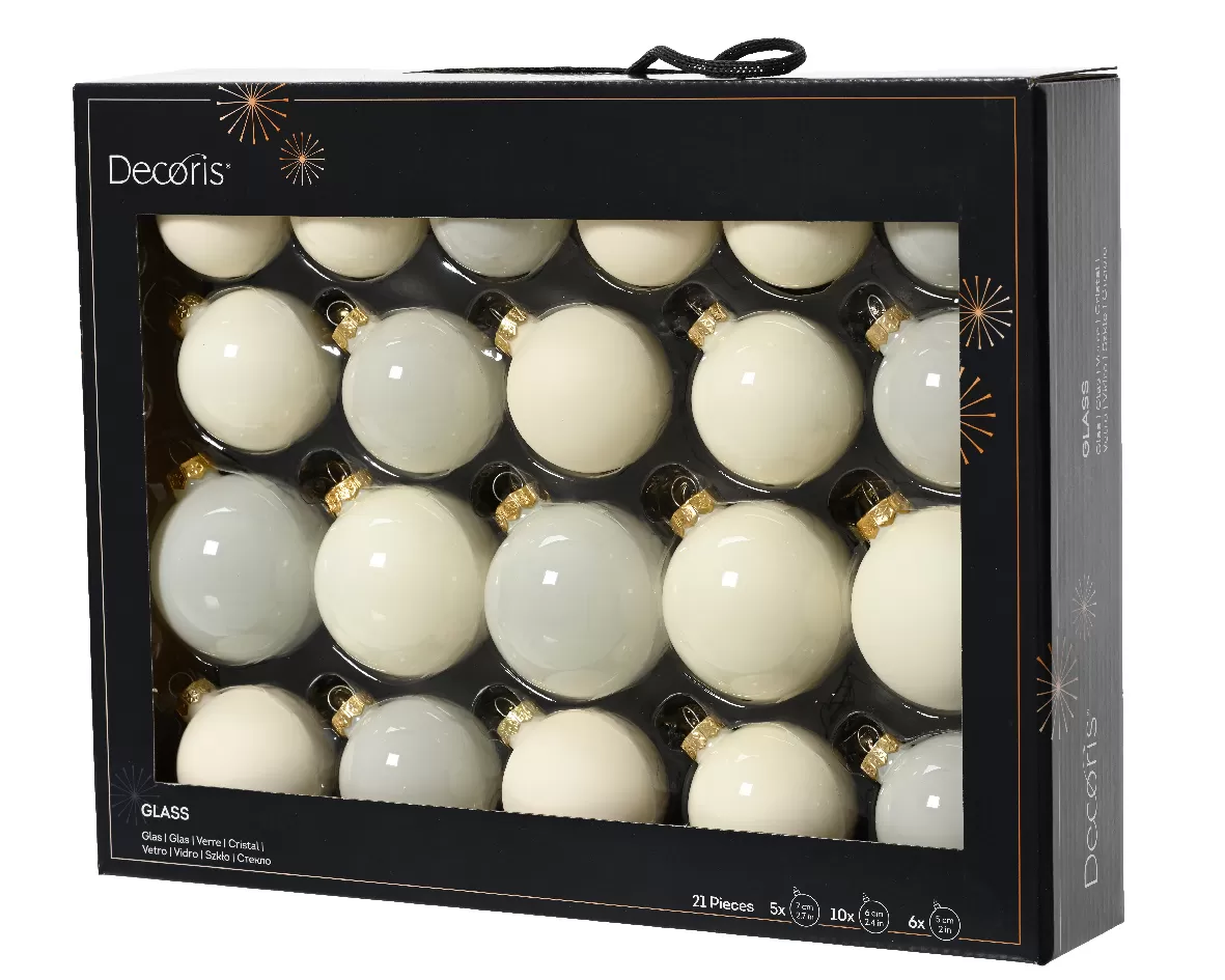Χριστουγεννιάτικες ΜΠΑΛΕΣ 3 ΜΕΓΕΘΗ ΛΕΥΚΕΣ 21 ΤΜΧ – Ιδανικά για το Χριστουγεννιάτικο Δέντρο σας!