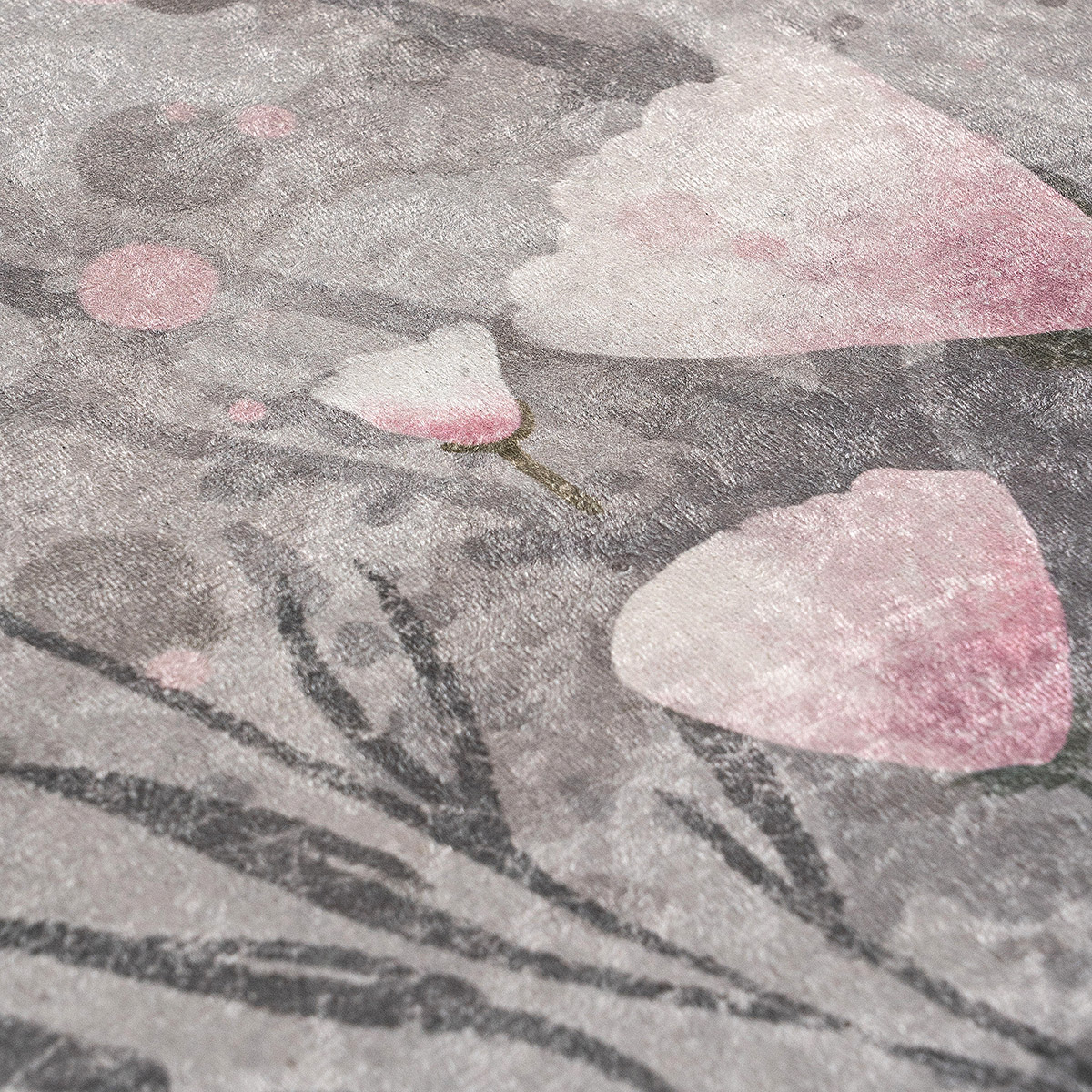 • Χαλί με λουλουδάτο σχέδιο σε μπεζ και ροζ αποχρώσεις