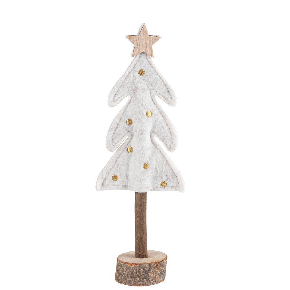 Beauty Home Δέντρο με Αστέρι σε Ξύλινη Βάση, Λευκή Τσόχα και Χρυσή Κεντητή Διακόσμηση 21 x 7,5 cm