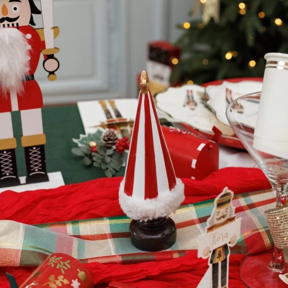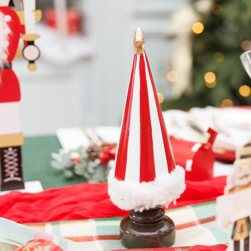 Beauty Home Διακοσμητικό Ριγέ Δέντρο με Γούνινη Λεπτομέρεια, Κόκκινο-Λευκό-Χρυσό Ø6 x 20 cm