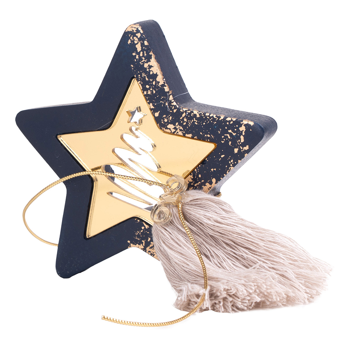 Beauty Home ΕΠΙΤΡΑΠΕΖΙΟ ΑΣΤΕΡΙ ΜΕ PLEXI GLASS ΣΚΟΥΡΟ ΜΠΛΕ