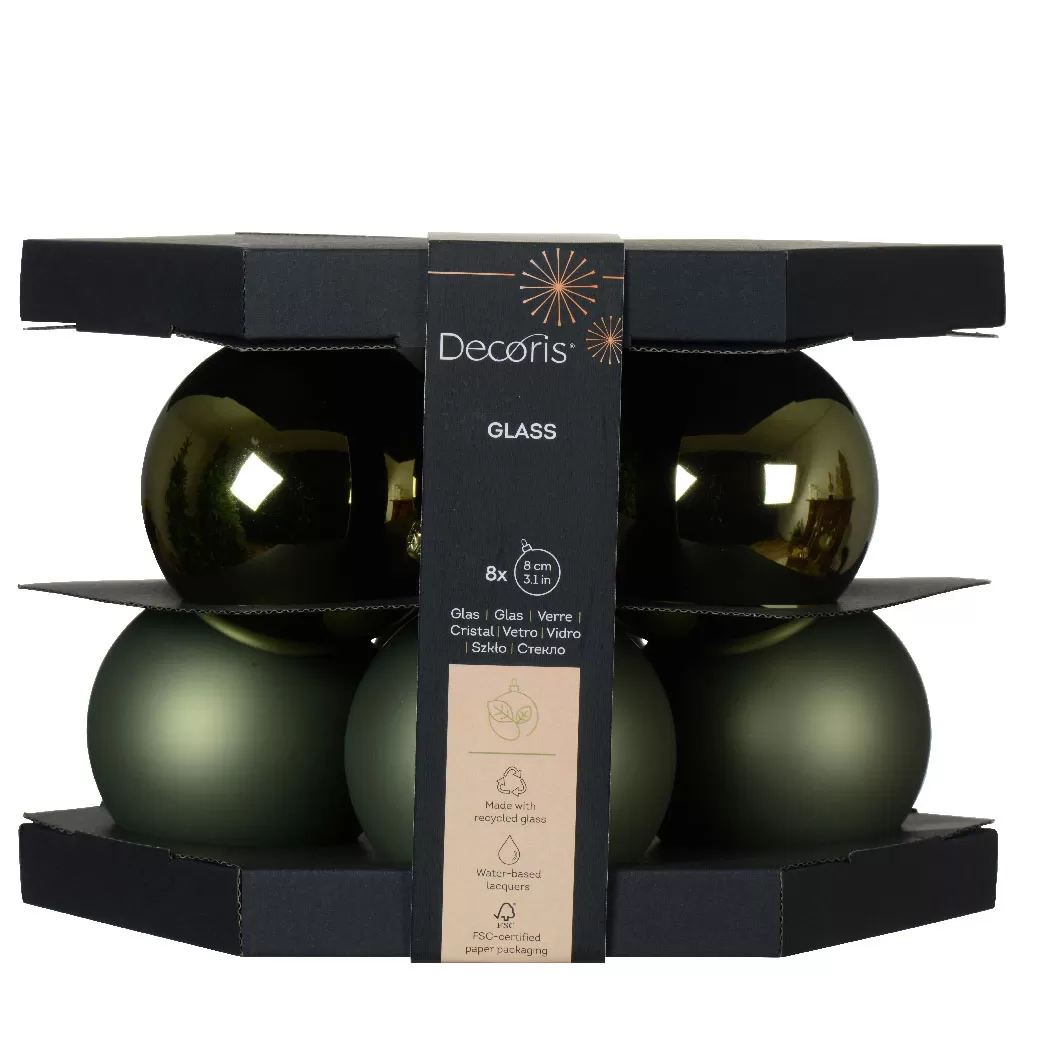 Beauty Home ΓΥΑΛΙΝΕΣ ΜΠΑΛΕΣ ΛΑΔΙ 8 CM ΣΕΤ 8 ΤΜΧ