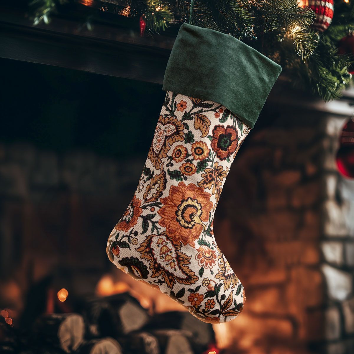 Διακοσμητική χριστουγεννιάτικη κάλτσα, ιδανική για να στολίσει το τζάκι, το δέντρο ή οποιοδήποτε γιορτινό σημείο του σπιτιού. Κατάλληλη για τοποθέτηση δώρων, γλυκών και μικρών εκπλήξεων, προσθέτοντας μια ζεστή και χαρούμενη πινελιά στη χριστουγεννιάτικη ατμόσφαιρα.