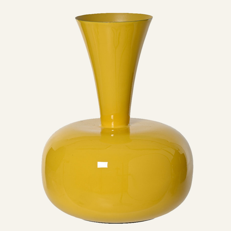 Μικρό μεταλλικό βάζο σε ζωηρό κίτρινο χρώμα, ιδανικό για να προσθέσει μια φωτεινή πινελιά σε κάθε χώρο. Ταιριάζει σε ράφια, τραπέζια ή πάγκους.