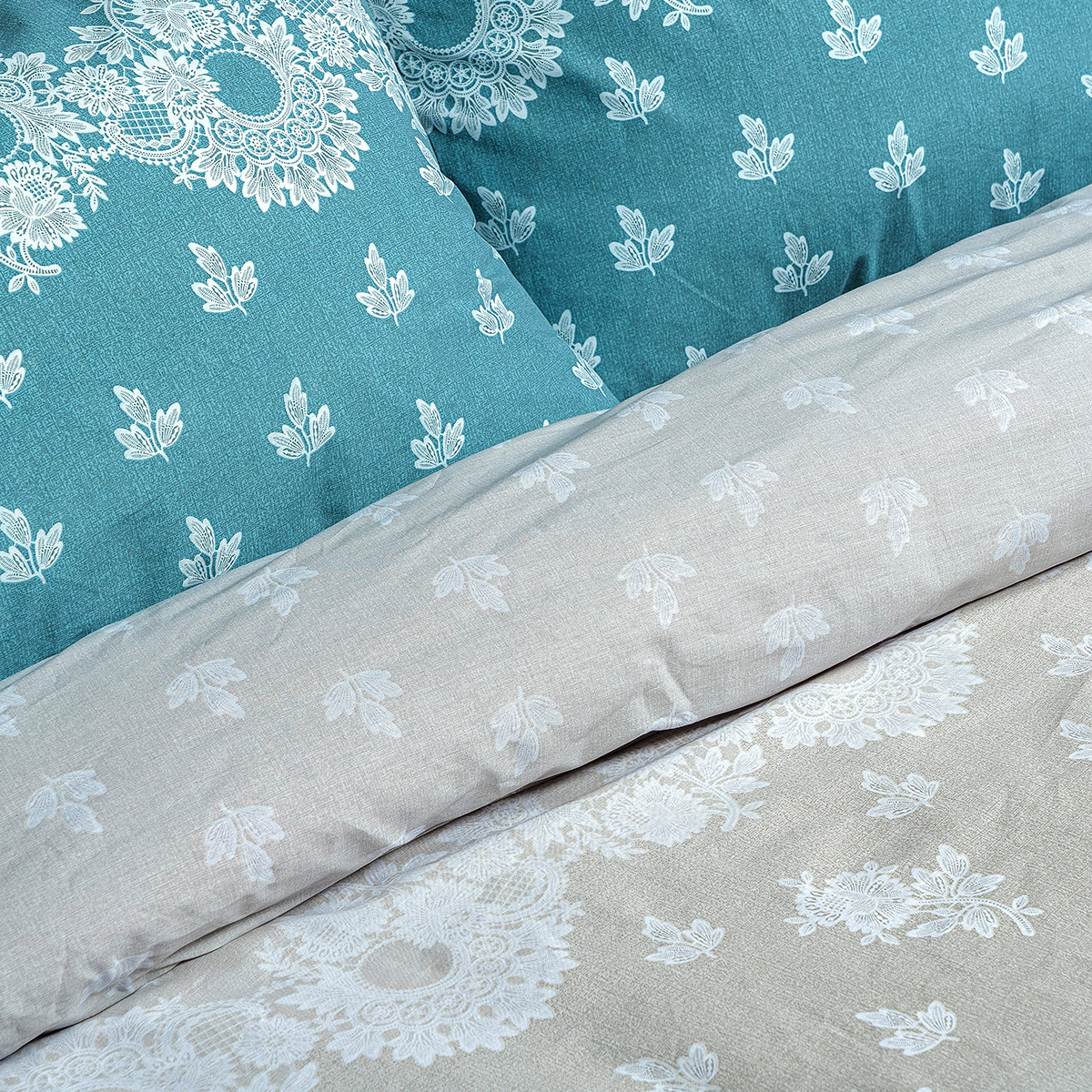 Beauty Home Σετ παπλωματοθήκη υπέρδιπλη Palm Art 12186 230×250 Πετρόλ,Μπεζ