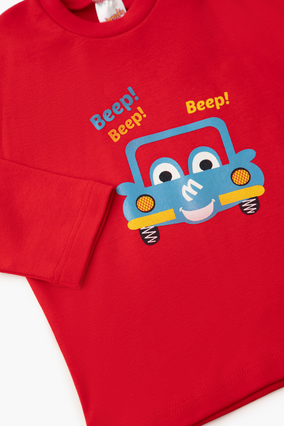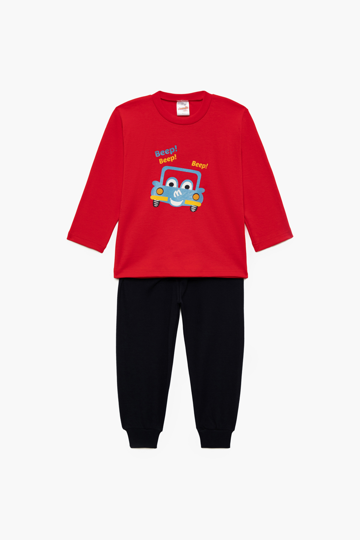 Βρεφική χειμερινή πυζάμα από 100% βαμβακερό ύφασμα, υψηλής ποιότητος. Το σετ περιλαμβάνει μπλούζα με τύπωμα στο στήθος και παντελόνι τυπωμένο all over, με μπάσκες στα τελειώματα. (Κοκκινο)