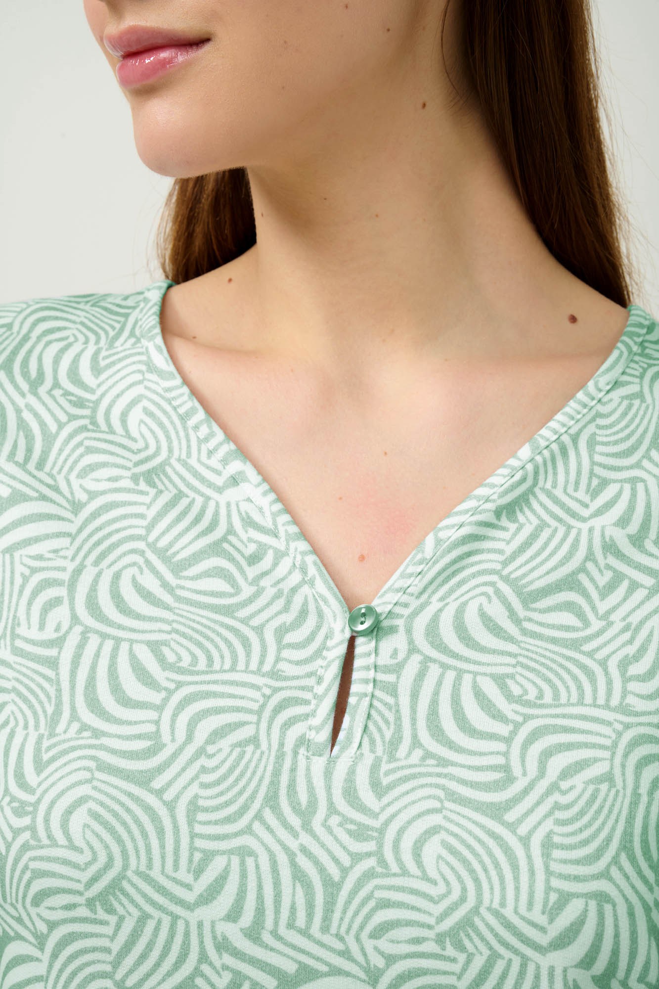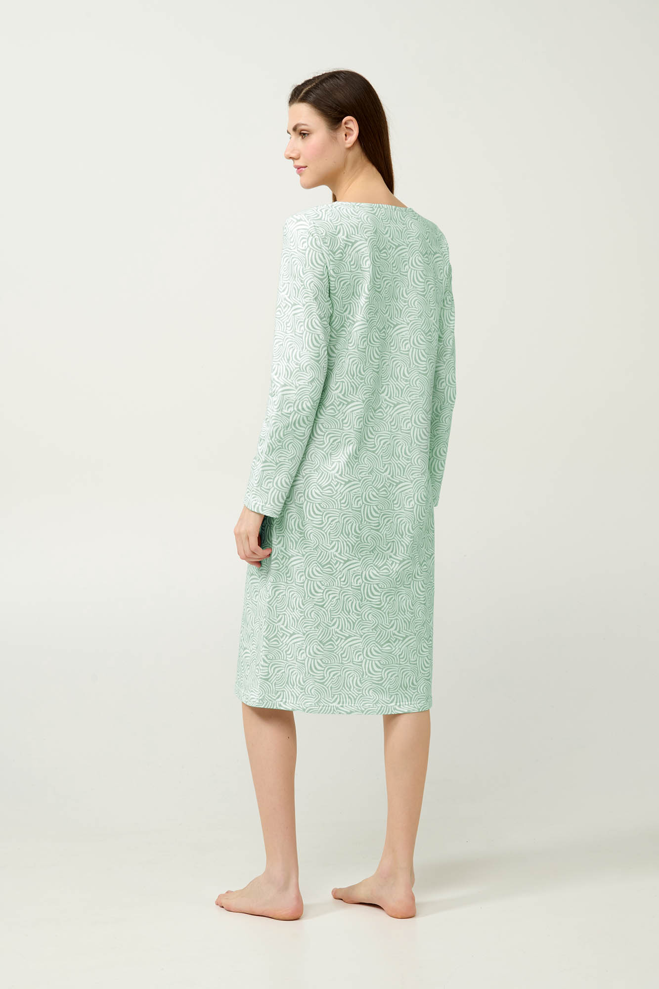 Προσθέστε στη συλλογή σας ένα χειμερινό νυχτικό, κατασκευασμένο από 100% βαμβάκι φούτερ για φυσική ζεστασιά και διαρκή απαλότητα. Διακοσμημένο με ένα απαλό πράσινο μοτίβο εμπνευσμένο από ζέβρα, προσδίδει διακριτικό χαρακτήρα και μοντέρνα κομψότητα. Με μακριά μανίκια και διαπνέον ύφασμα, προσφέρει άνεση και στυλ για τις κρύες βραδιές του χειμώνα. Ιδανικό για στιγμές χαλάρωσης και ξεκούραστου ύπνου.