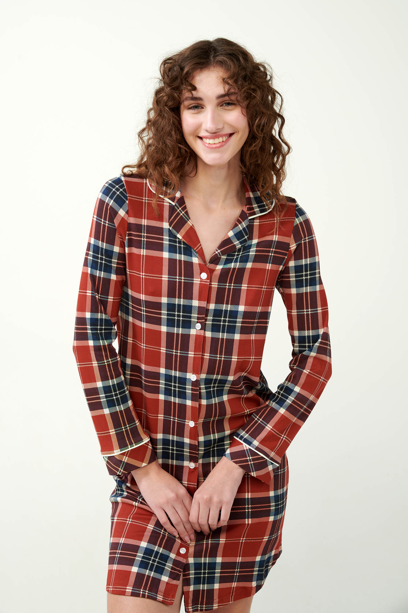 Χριστουγεννιάτικο Νυχτικό με Κουμπιά σε Ταρτάν Μοτίβο
