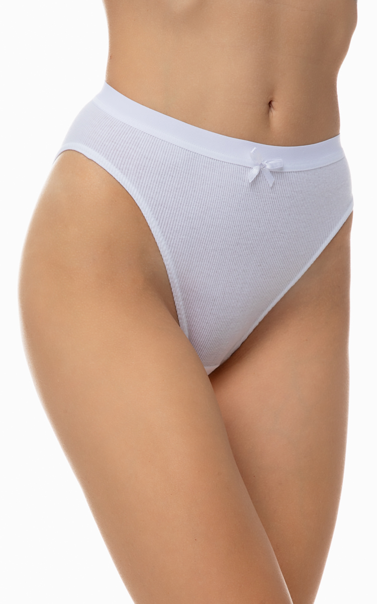 Γυναικεία κυλότα brazil, από την κλασική και συγχρόνως διαχρονική συλλογή της Minerva. Xωρίς ραφές στα πλαινά και με εξωτερικό λάστιχο μέσης. Φτιαγμένη από 100% πενιέ βαμβάκι με πλέξη Rib 2X2, εξαιρετικής ποιότητος, για άνεση και αντοχή στο χρόνο, δίχως να χάνει τη φόρμα της. (Λευκο)